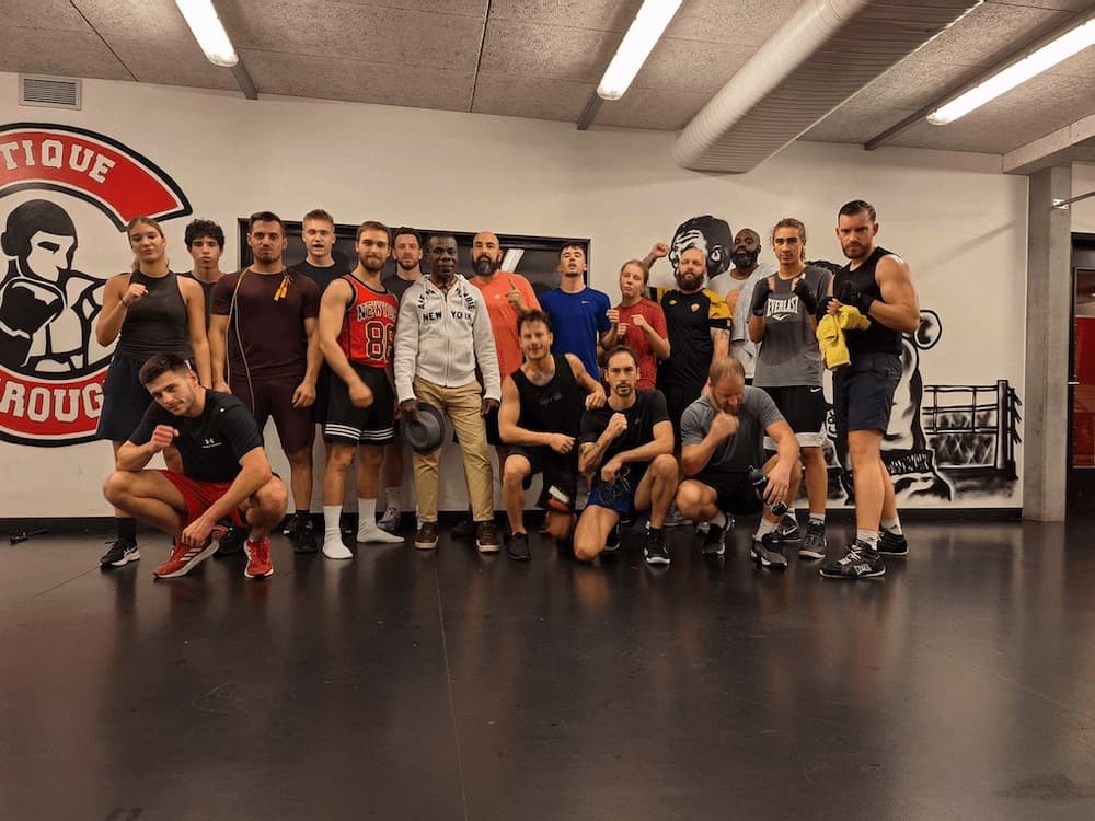 Certains se succèdent au sac pour un entraînement de techniques de frappe, d’autres continuent sur des phases plus techniques, assauts thématiques, avec gants casques et protège-dents ; les plus avancés travaillant aux pattes d’ours avec les coachs ou se préparant pour quelques rounds de sparrings.